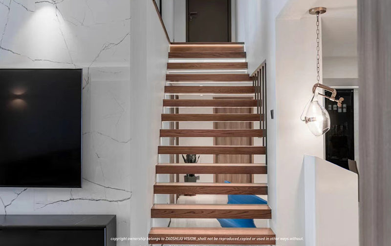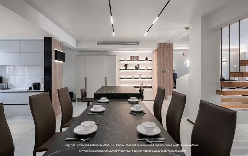 燈光的渲染、大理石紋的自然天成、木紋的有序淡雅,