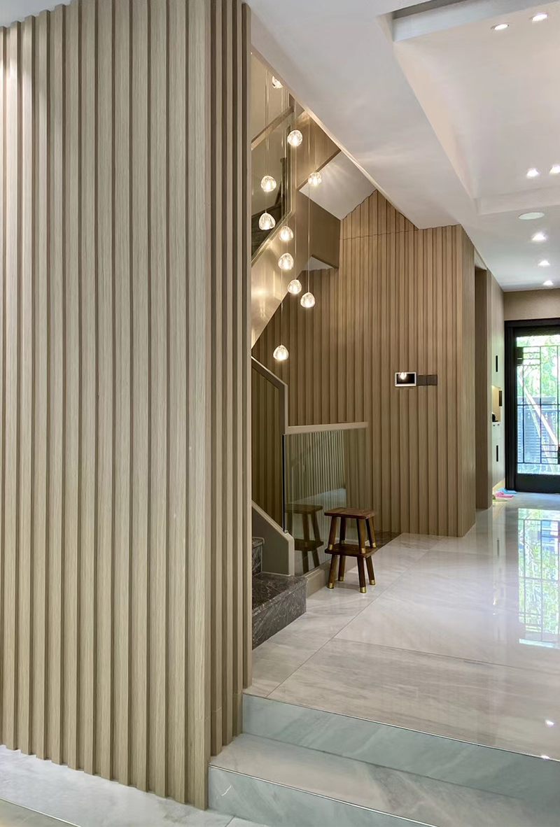 造型獨特的格柵護墻是LEDINI精湛工藝的體現。自然的木料經過設計加工也擁有了強大的氣場。