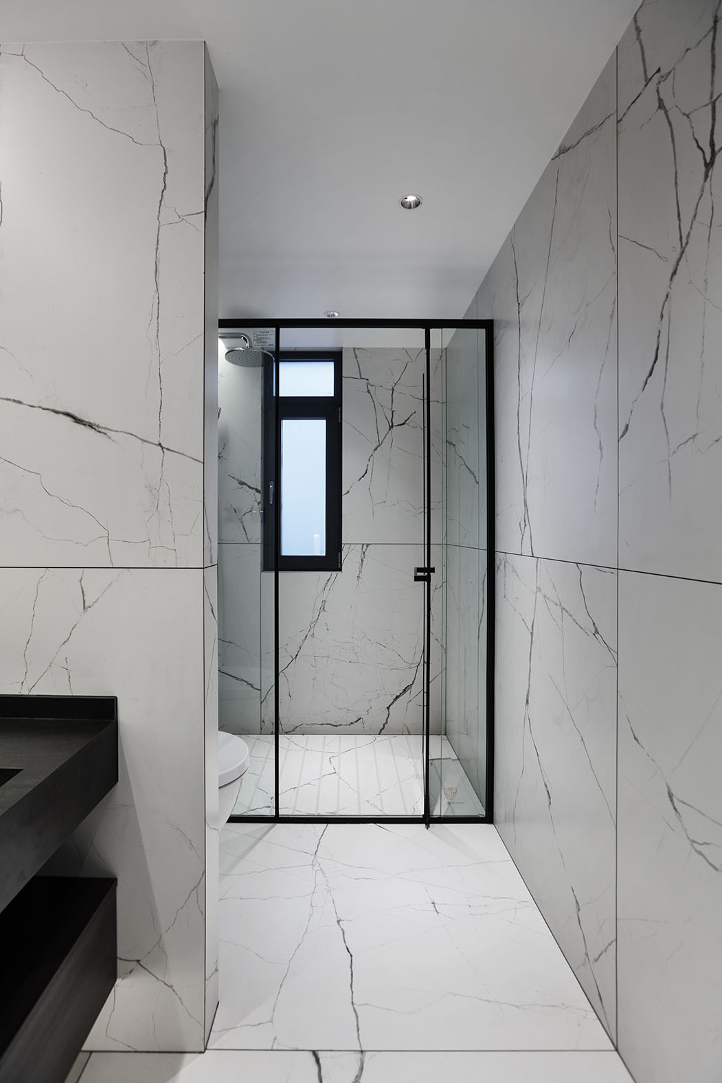 干濕分離的空間內(nèi),大理石與灰色系的搭配高級且時尚,