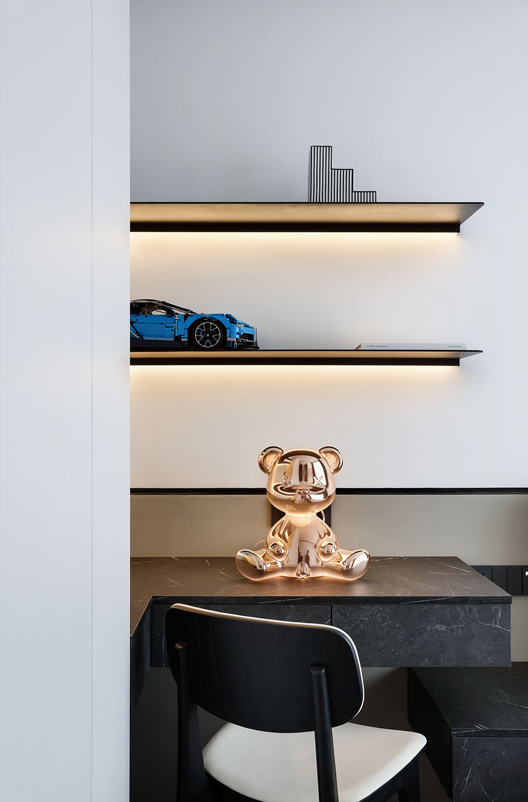 內(nèi)嵌式的柜體設(shè)計精致獨特,生活的紛亂,全藏其中,