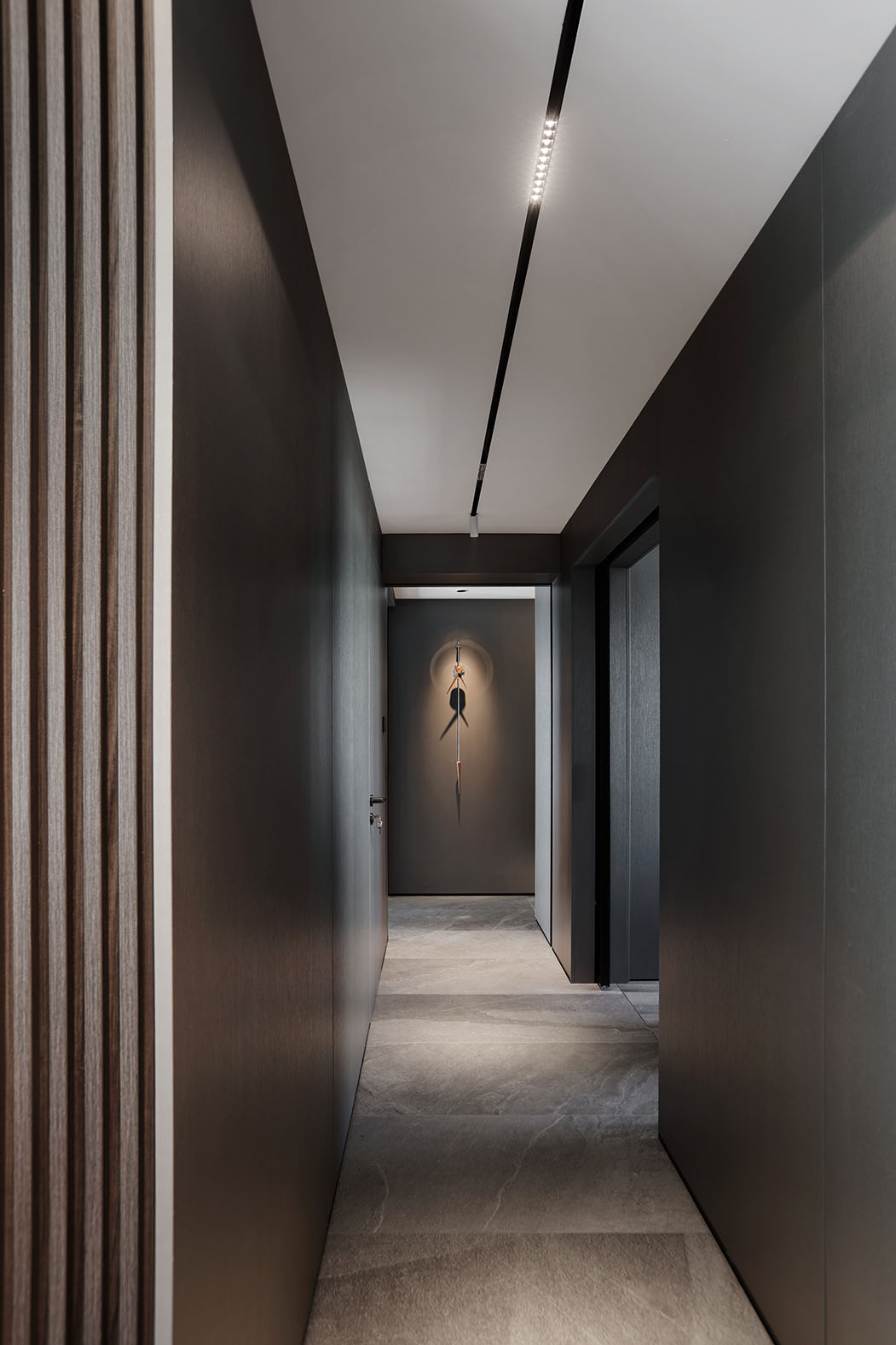 過道兩邊的護墻光影層次豐富,更顯立體感,高級感。