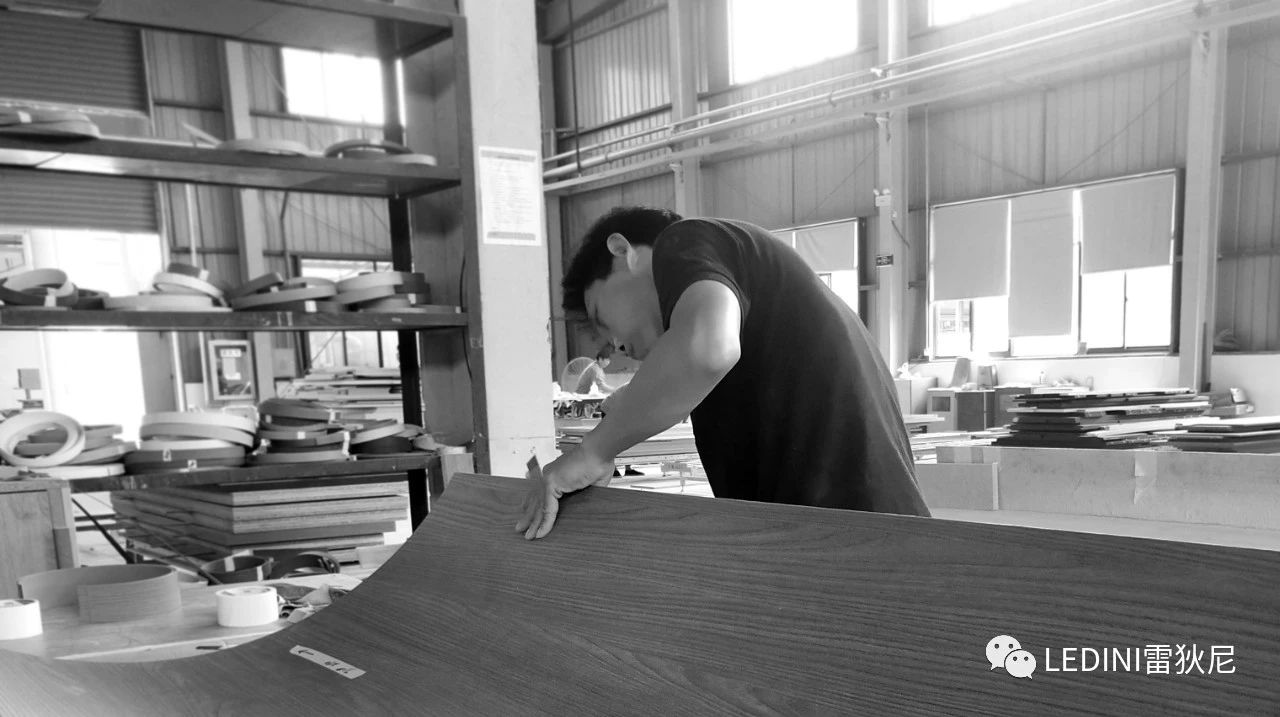 從原料的引進,到木皮選材、貼面、裁切、封邊、鉆孔、再到打磨、上色油漆、配件安裝,每一件LEDINI的產品都至少經過十幾道工序的嚴格檢驗,