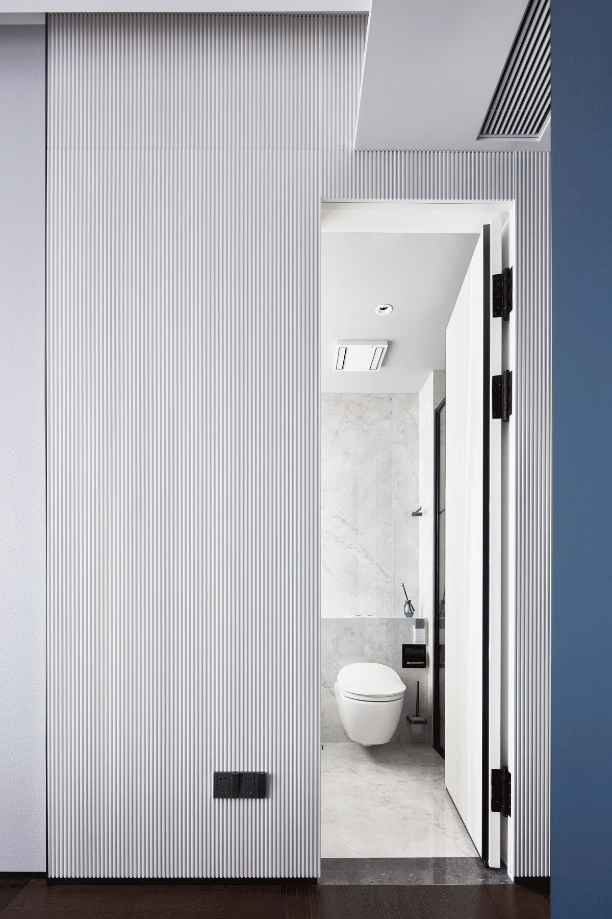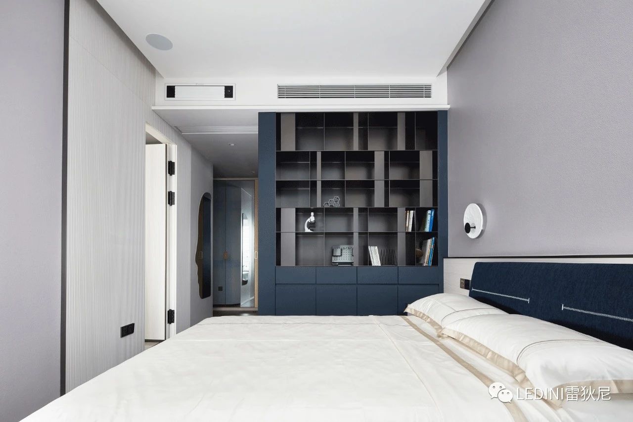 隱形格柵門,藍色墻飾豐富墻面視覺,現代感十足,