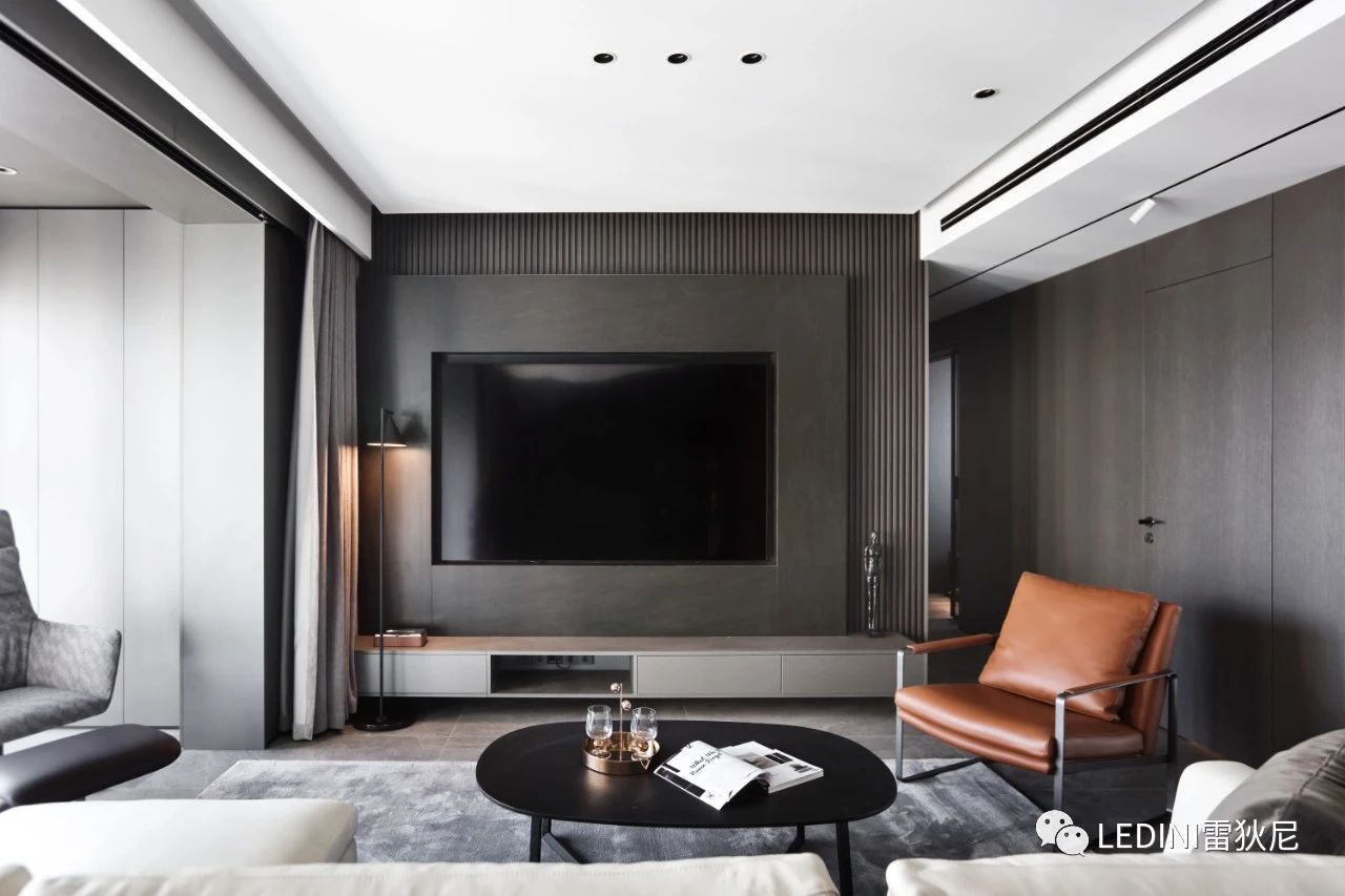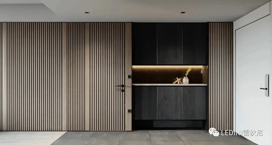 無論是整面的格柵背景墻,還是將之與石材、金屬等材質結合,