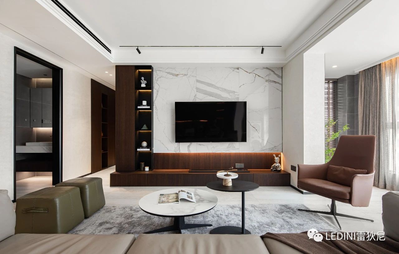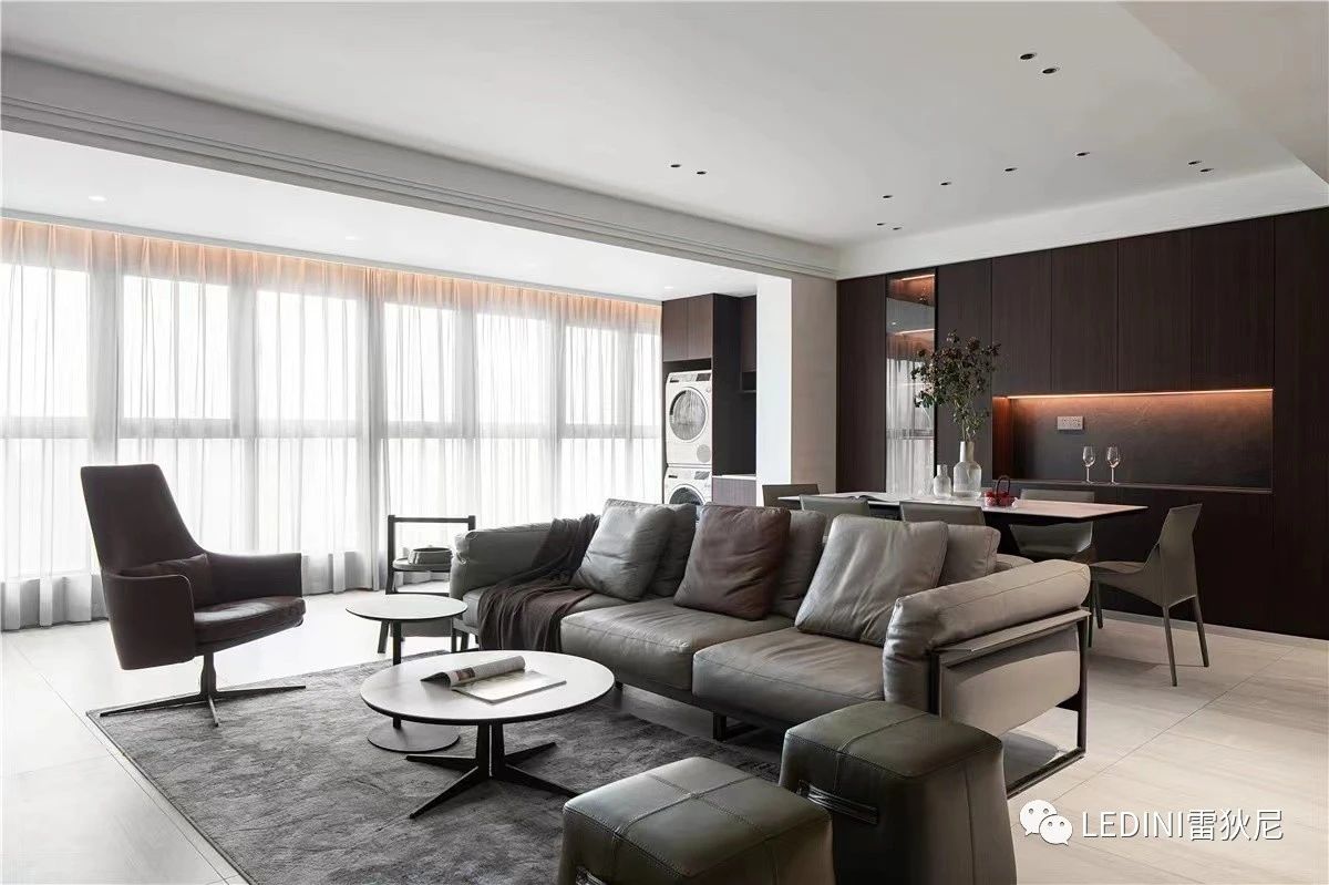 運(yùn)用黑白灰、點(diǎn)綴低飽和度色系與不同材質(zhì)之間巧妙融合,