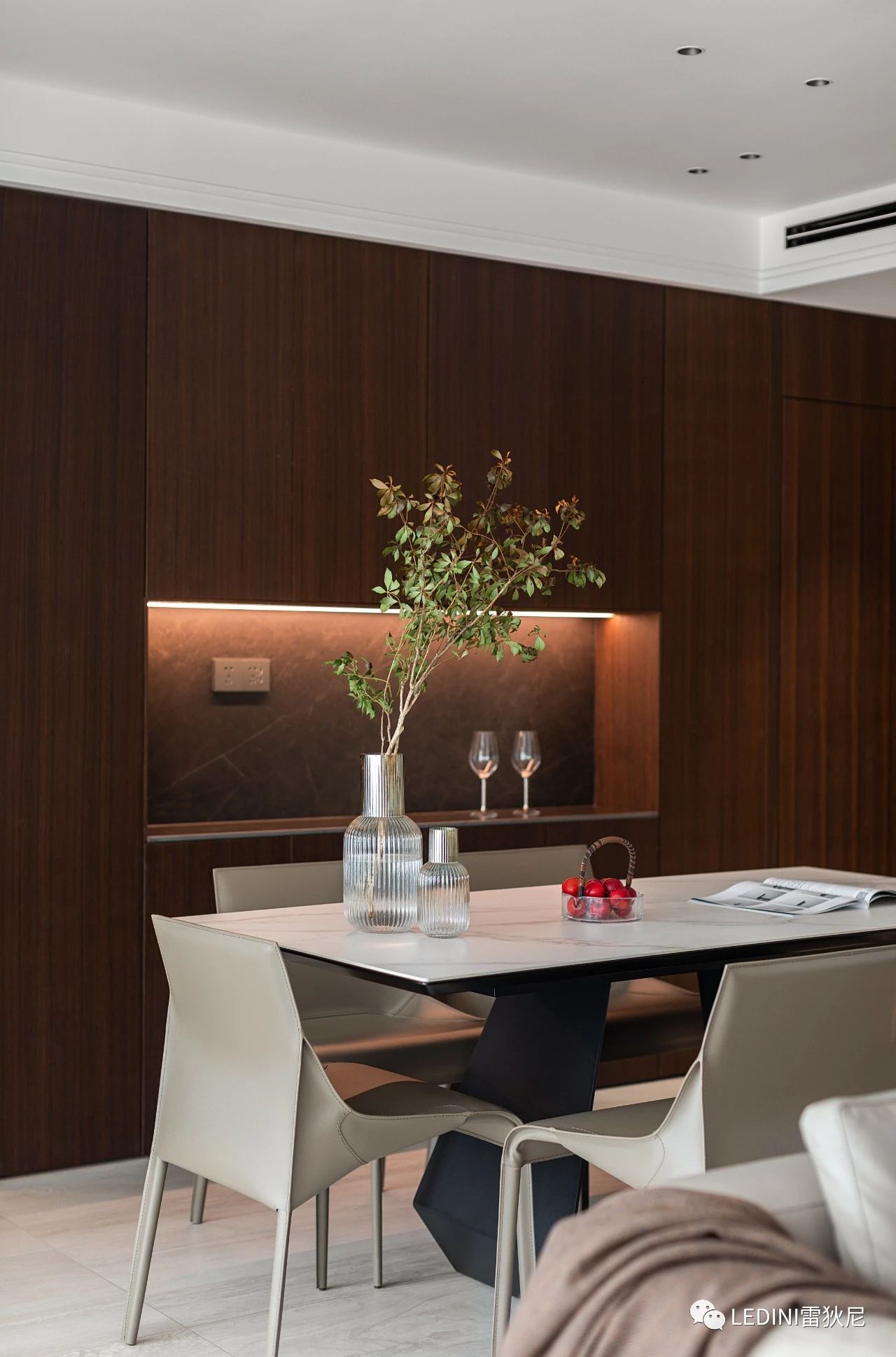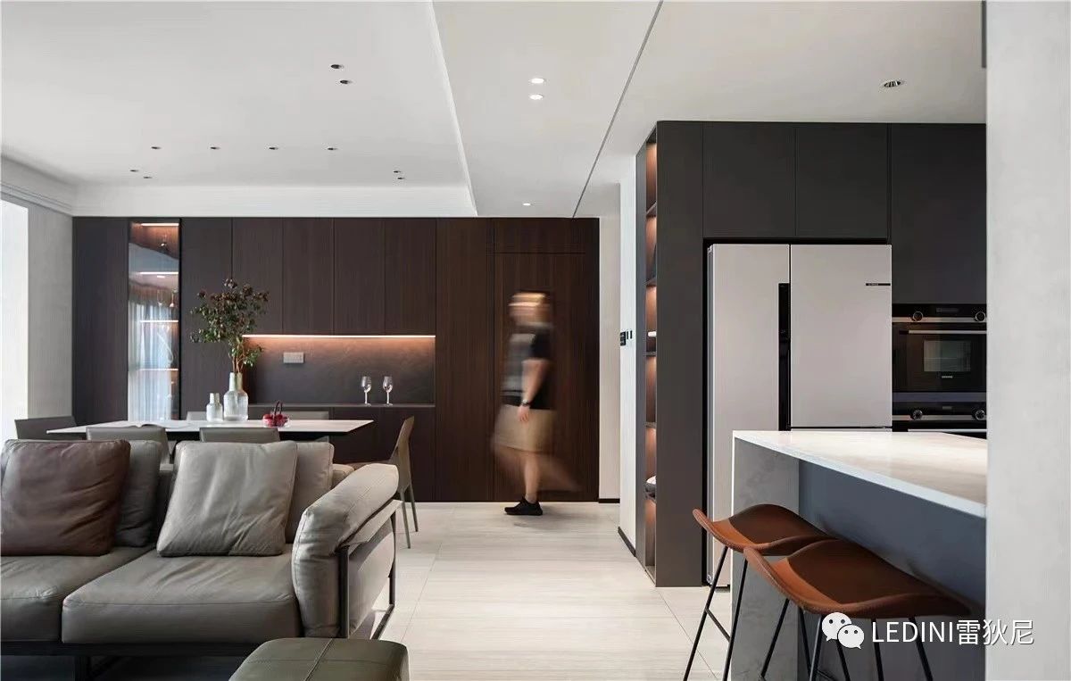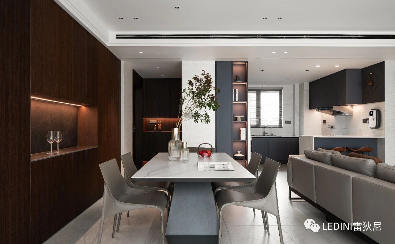 一條光線溫潤(rùn)了深色的空間,提升餐邊柜層次感,