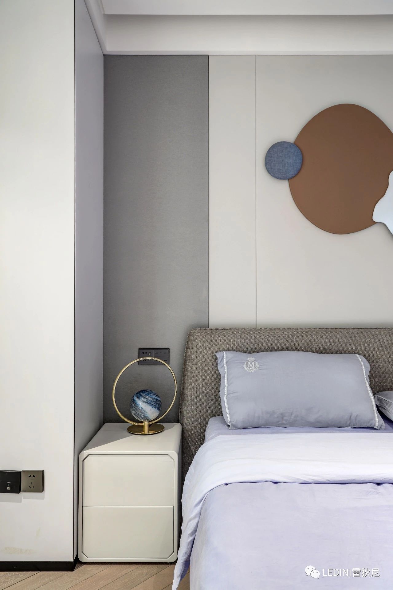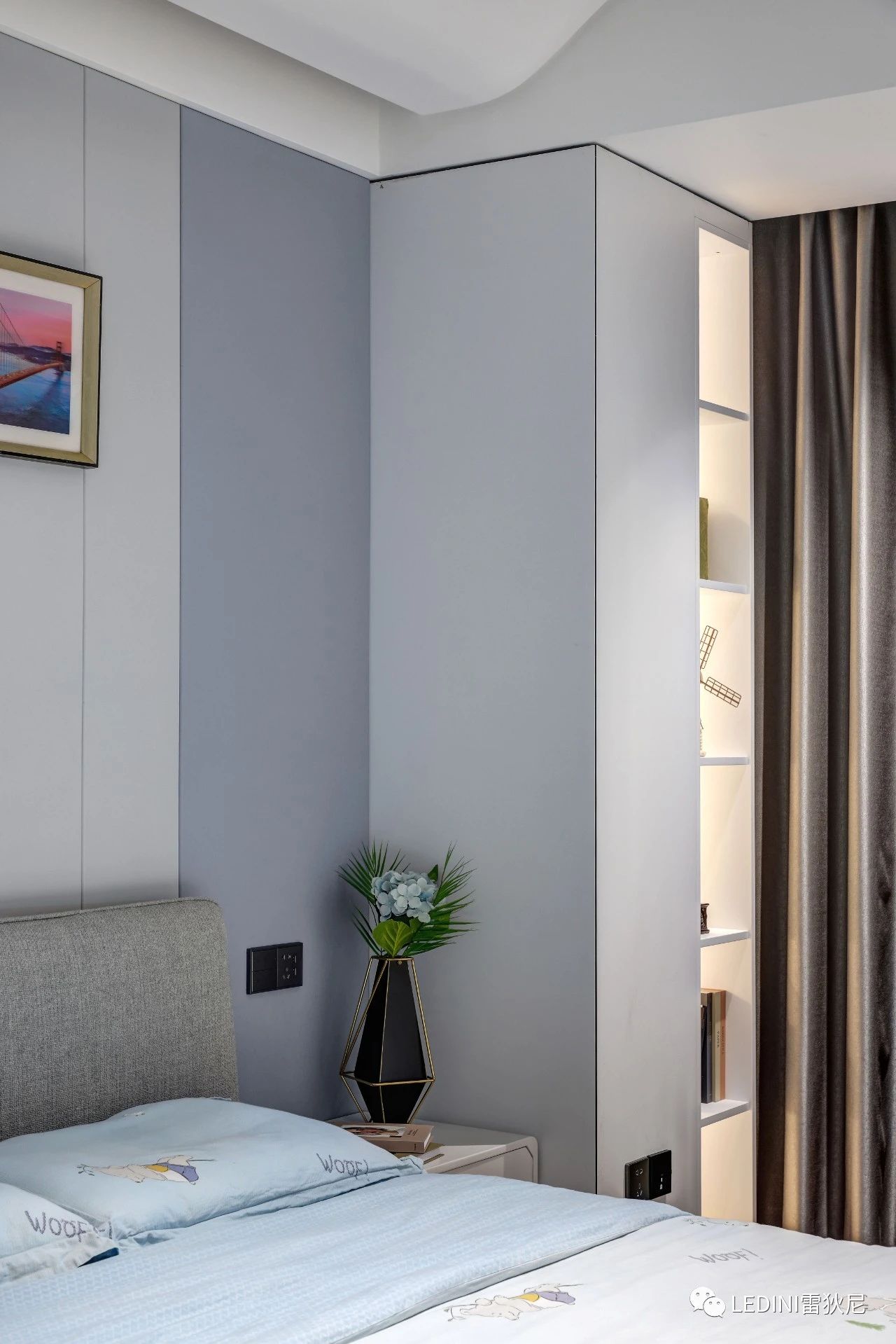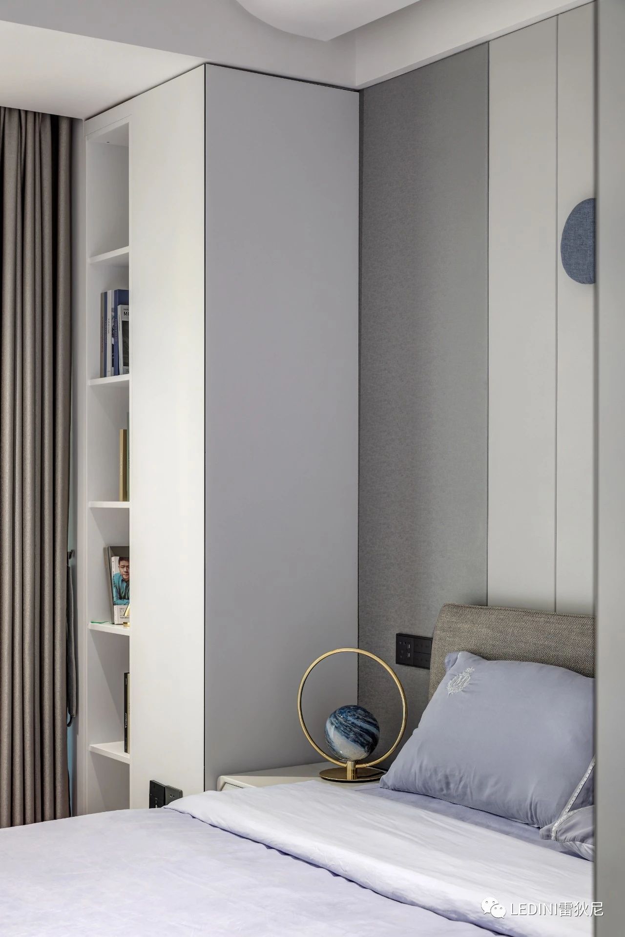 次臥,延續(xù)了主臥的簡潔格調(diào),素雅溫煦。