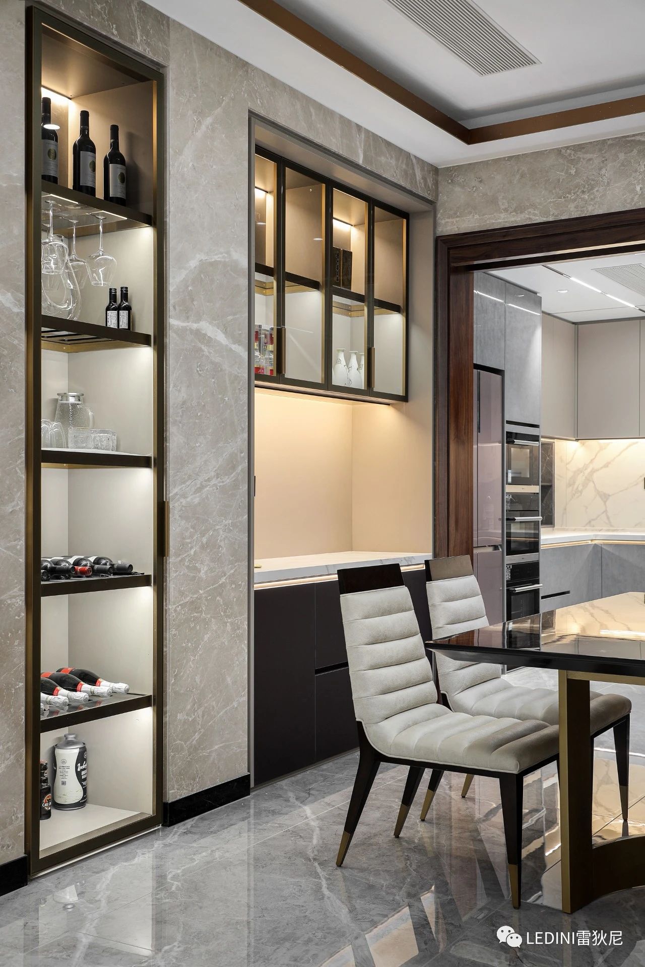 餐邊柜大面積的高級灰使整個空間沉穩克制,