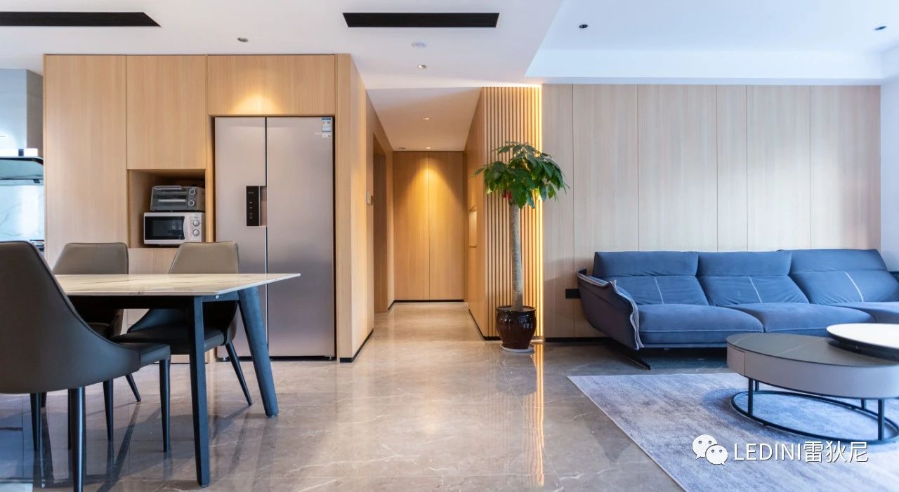 米灰色穿插黑色、搭配木地板等元素增加層次感,
