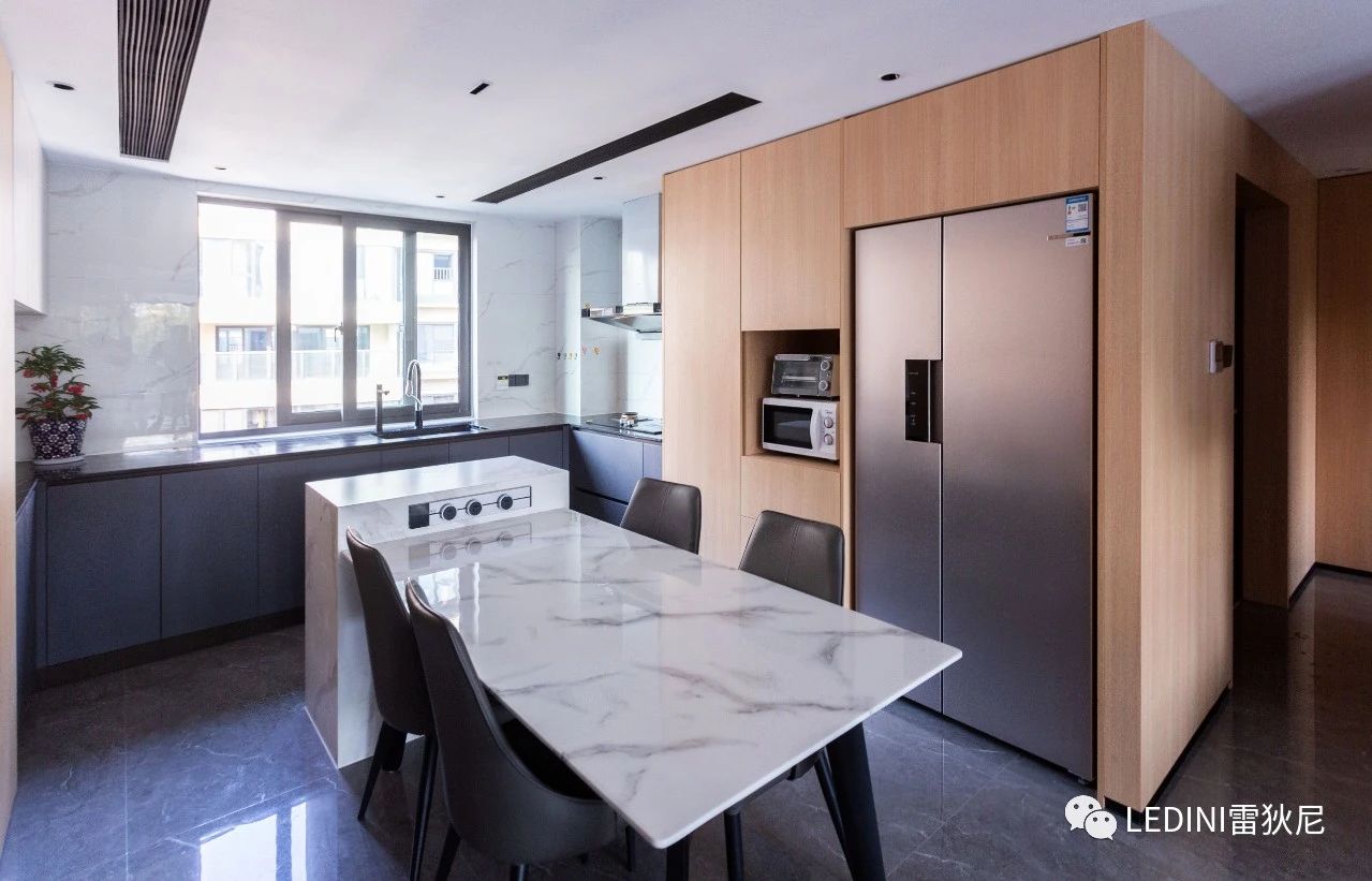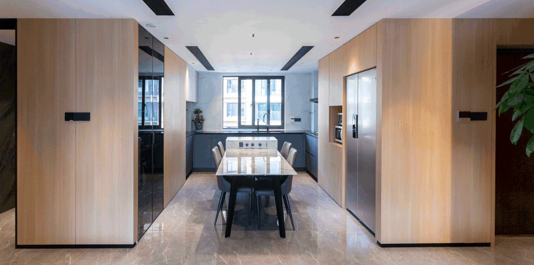 餐廳和廚房的融會貫通獲得了視覺上的開闊,