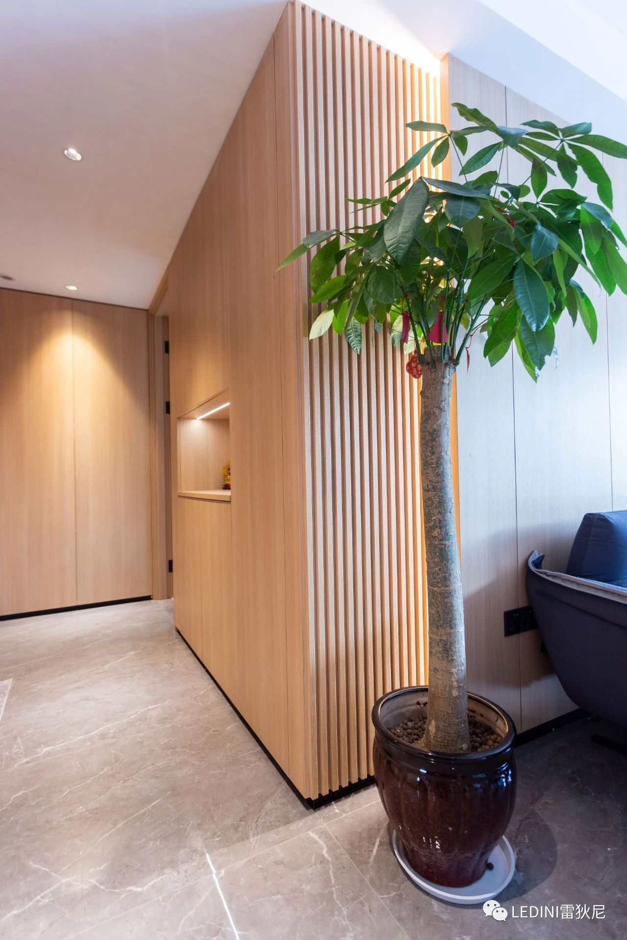 原木色優(yōu)雅溫潤,搭配格柵元素增加設(shè)計(jì)感,