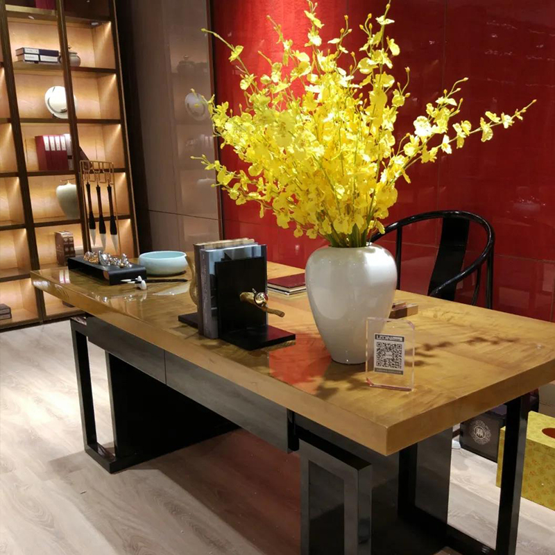 華麗的金絲楠木辦公桌在光影中展示著他高貴的姿態;