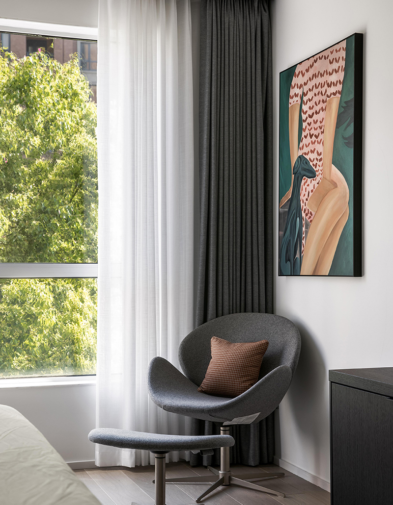 莫蘭迪色系的碰撞顯得空間素雅詩意富有質感,