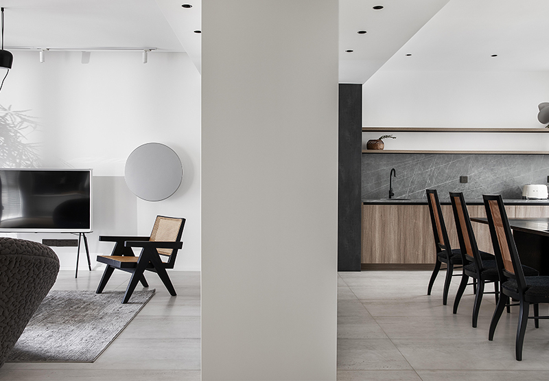 設(shè)計(jì)師用護(hù)墻將客廳和餐廳完美分割,