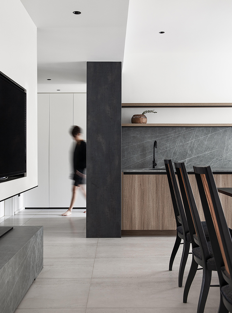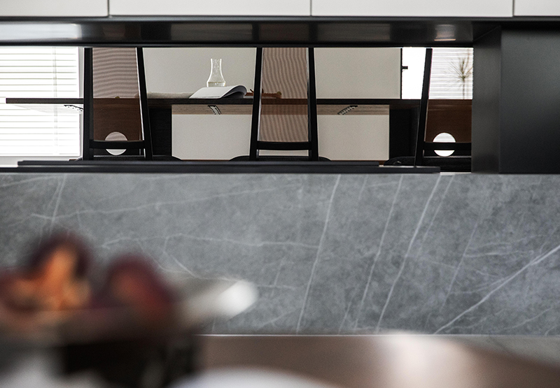 木紋+石紋打造的櫥柜形成“柔”與“硬”的鮮明對(duì)比,
