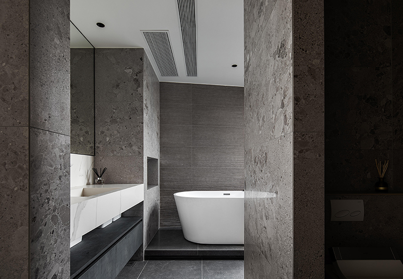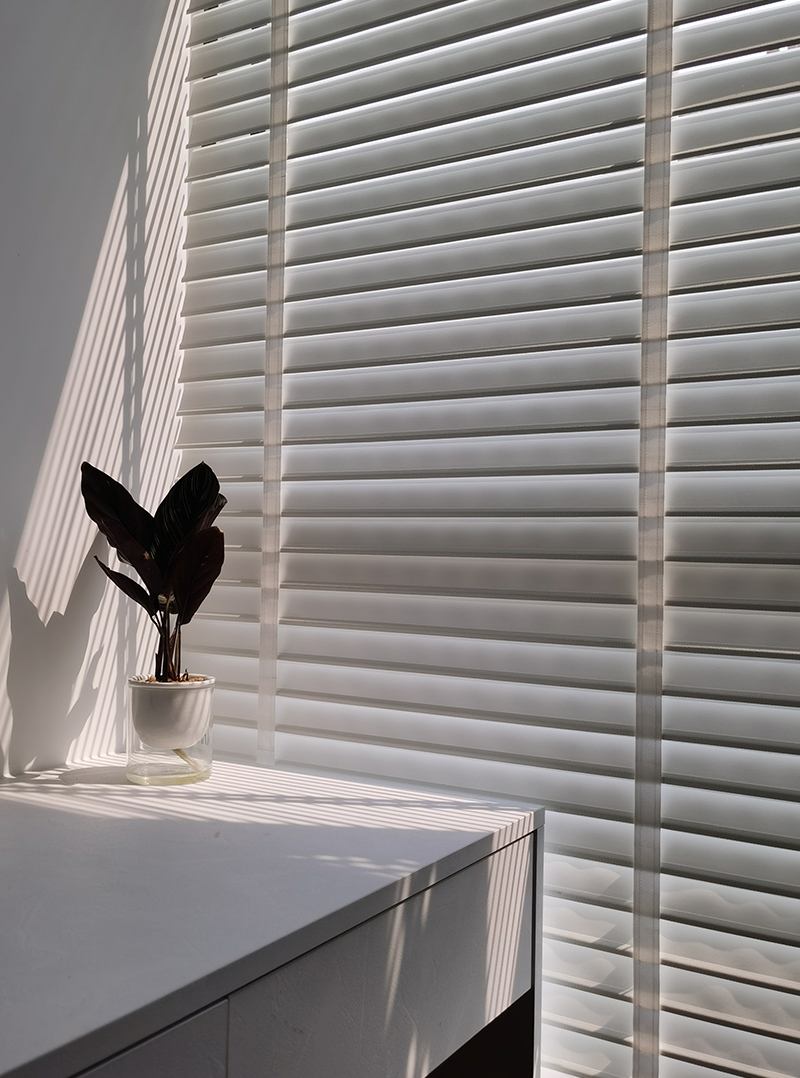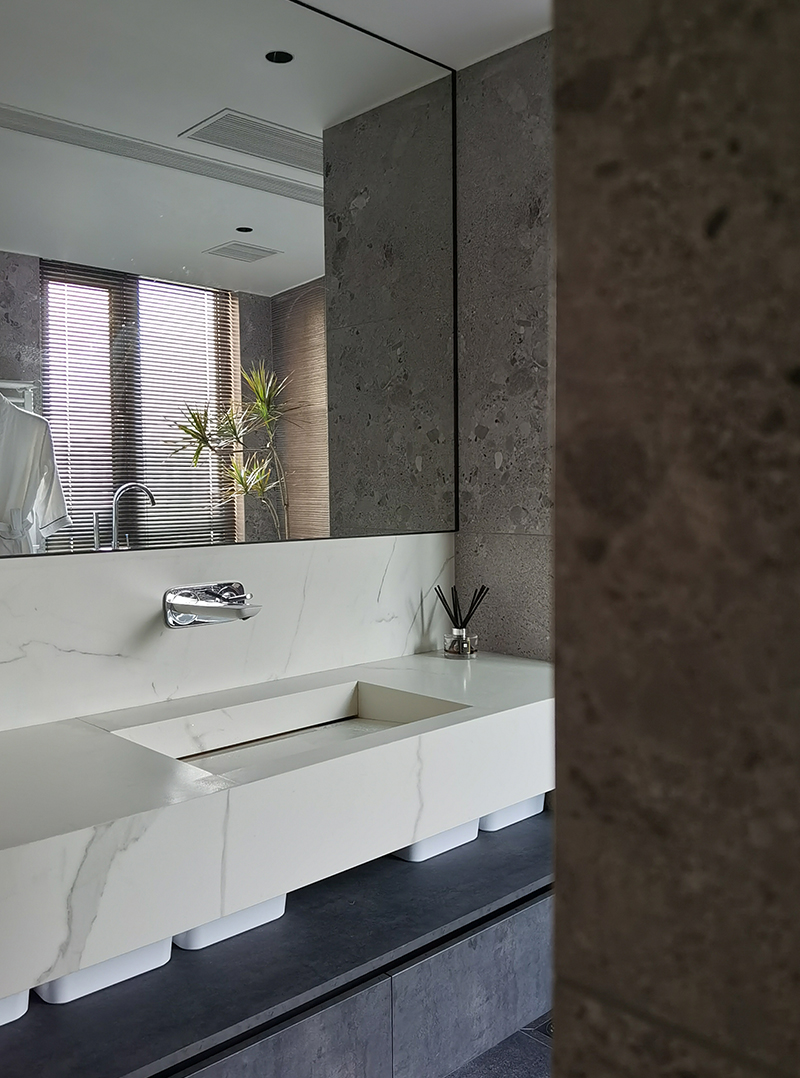 素雅的白色柜體在光影中隱約浮現(xiàn)著淡淡的石紋光澤,