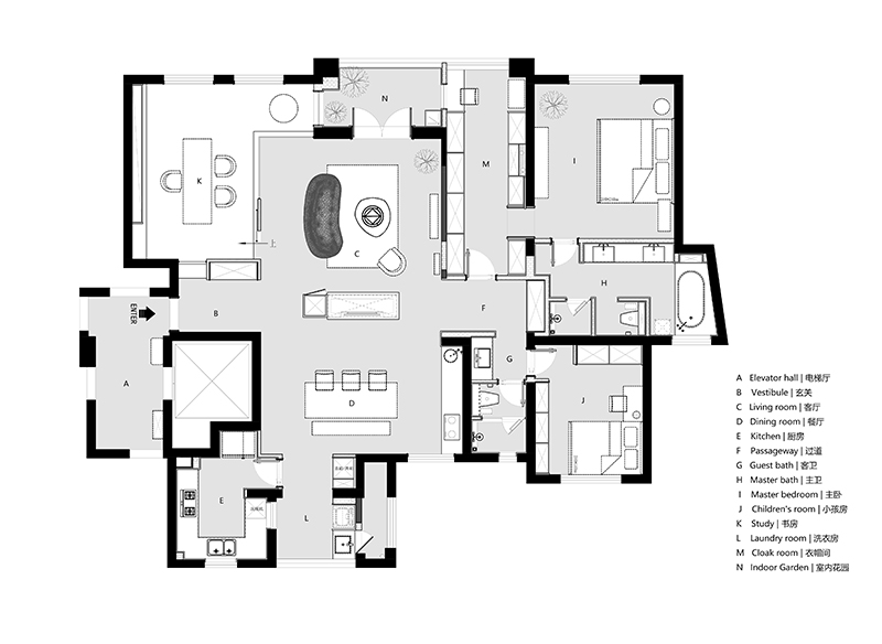兩者融合,使空間不乏潺潺流動(dòng)的靈韻之美,